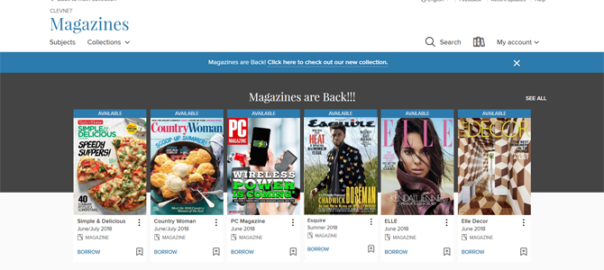 We know patrons have missed being able to check out magazines via our eMedia services, so we are incredibly pleased to announce that CLEVNET library card holders can now access 50 digital magazines directly through Overdive and Libby. There’s no need to download a third party app – just continue to use your preferred method…