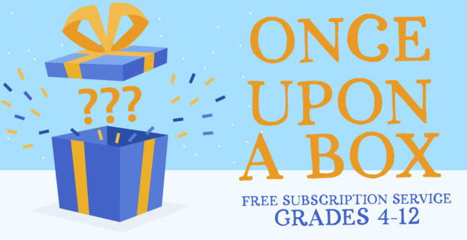 Once Upon a Box is a monthly subscription service offered by the Milan-Berlin Library District Children and Teen Services Departments. Patrons in grades 4-12 can sign up to have the opportunity to pick up boxes at the beginning of each month that contain a library book chosen with their interests in mind, along with 2-3 goodies they can keep.