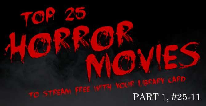 With Halloween just around the corner, it’s the perfect time to check out all the fantastically freaky horror films available to you for FREE with the use of your library card (though some of us would say it’s always a good time for a well crafted scary movie). Your movie loving Digital Technology Librarian, Christy, is here to offer up some of her personal favorites, all of which are available to Milan-Berlin Library District card holders through at least one of our three video services – CLEVNET Overdrive, Hoopla Digitral and Kanopy.